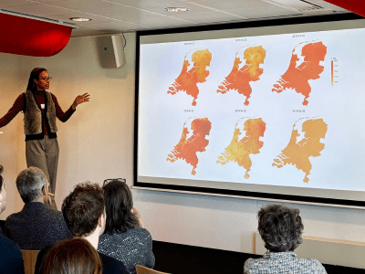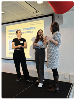 Nieuwe inzichten, concrete oplossingen en één centrale vraag: hoe beschermen we inwoners beter tegen hitte? Tijdens de landelijke Kennisbijeenkomst Hitteadaptatie op 18 maart in Den Haag kwamen zo’n 100 professionals samen - van gemeenten en GGD’en tot kennisinstellingen en het Rijk — om precies die vraag te beantwoorden. Met reflecties vanuit onderzoek (ZonMw, RIVM), beleid (VWS, IenW, VRO/BZK) en praktijk (o.a. gemeenten Eindhoven en Amsterdam), en 16 presentaties over nieuw onderzoek naar hitteadaptatie, stond de dag volledig in het teken van uitwisseling en samenwerking. Een korte terugblik op een levendige en inhoudelijk sterke bijeenkomst.